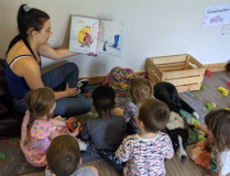 He enjoys lying down to demonstrate good listening skills at story-time, but his favourite thing is playing outside with the children - especially when they play ball games, go on the trampoline or set up obstacle courses!